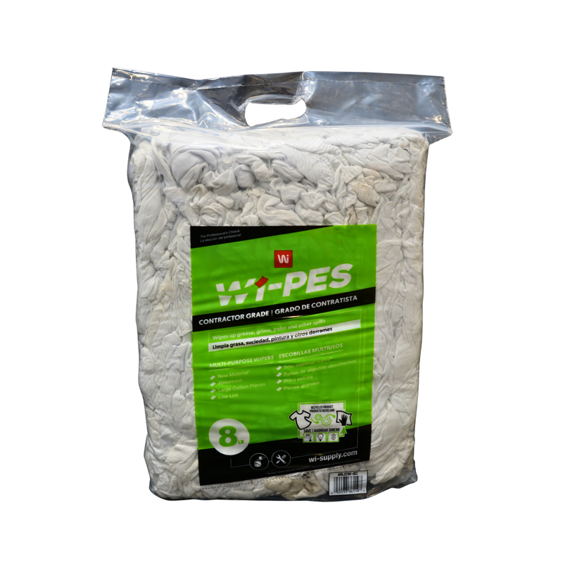 These white jersey rags are made from new materials, featuring a value mix of heavy knits with a high cotton content for reliable durability and performance. Washed for enhanced absorbency, they provide excellent wicking and cleaning capability. The large pieces are free of buttons, pins and strings while the bright white colour makes it easy to detect grease and grime, ensuring consistent cleaning results. Available as an 8-pound bag.